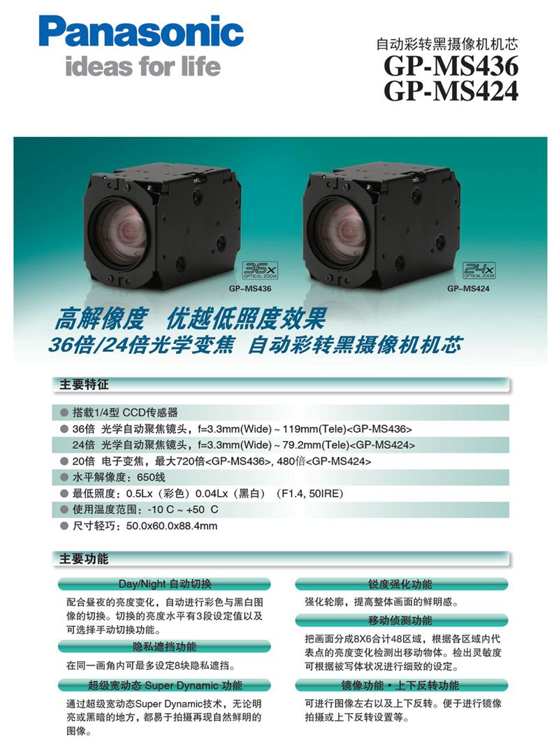 • Alta sensibilidad: 0,5 lx (color), 0,04 lx (blanco y negro) a F1,4