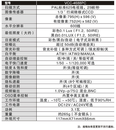 VCC-4688PC 1/3"彩色CCD DSP高解像度昼/夜摄像机