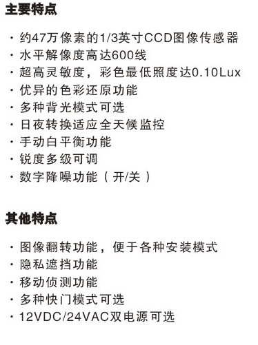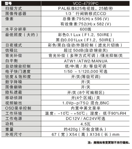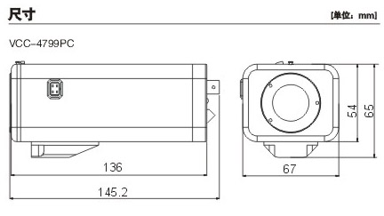 首页 >  枪式摄像机系列 >> VCC-4799PC 1/3"彩色CCD DSP高解像度昼/夜摄像机
