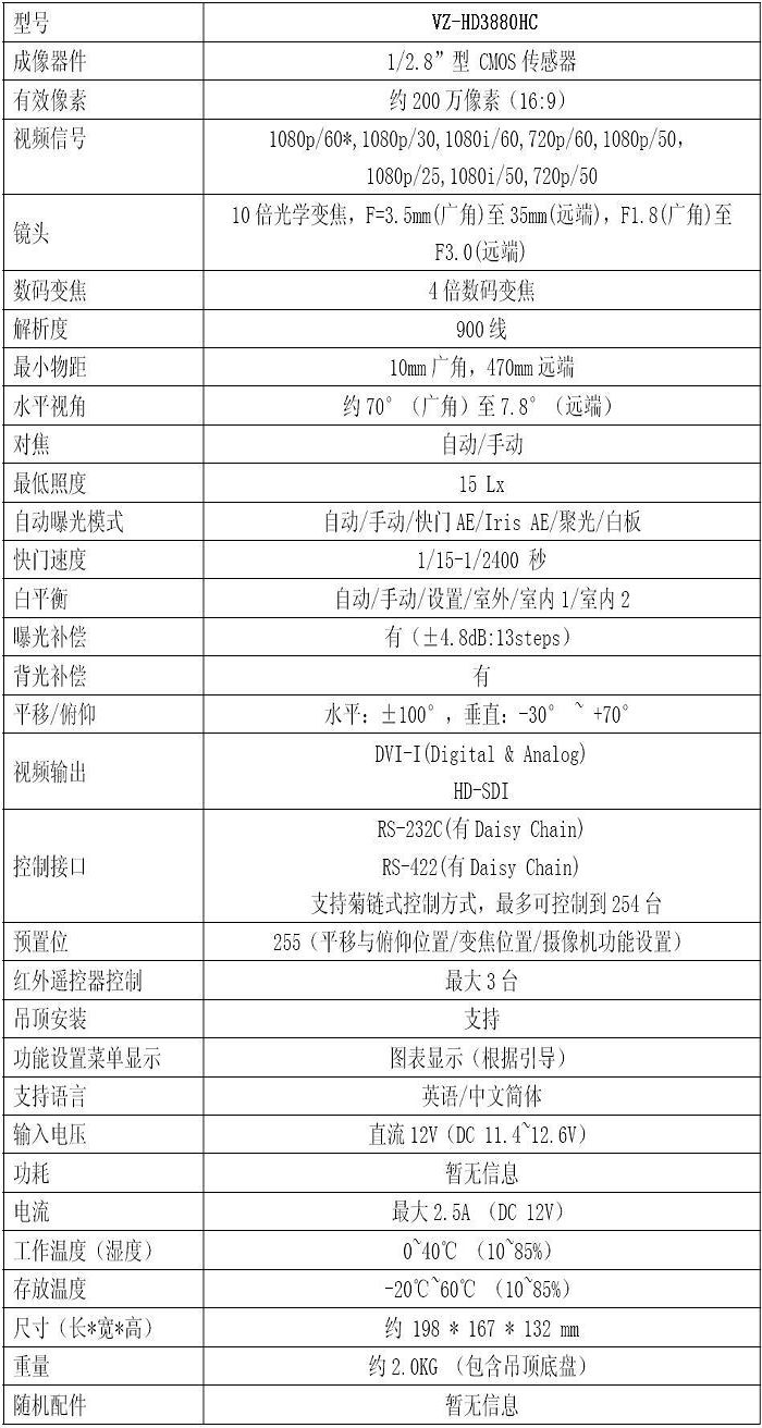 | VZ-HD3880HC 日立200万像素通讯型彩色摄像机 |