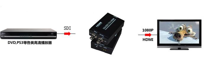高清HD SDI-HDMI转换器是一款专用于单路高清数字分量串行接口(HD-SDI和3G-SDI)信号转换为HDMI 信号的设备。该设备集成SDI 接收器及HDMI 调制器,可方便的将HD-SDI 信号转为HDMI 信号,同时会将SDI所带音频信号分离转换后嵌入到HDMI 信号中,以实现声音及图像同步传输。