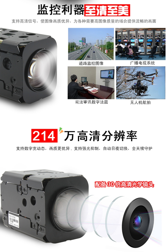 - 强大的变焦能力,支持光学变焦30倍,数字变焦12倍。