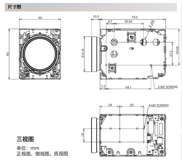 1/2.8" 逐行扫描 CMOS(对角:6.49mm) |