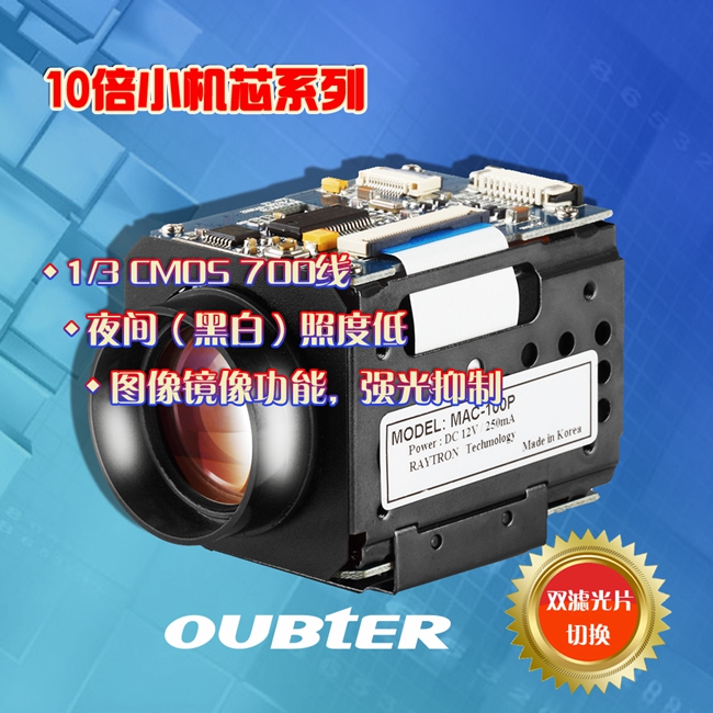 ★ 高速数字对焦 变倍全程跟踪自动对焦 ★ 英文菜单显示 ★ 中文菜单显示,强光抑制功能 ★ 双滤光片切换功能(可选) ★ 10光学彩转黑700线高速一体化摄像机机芯