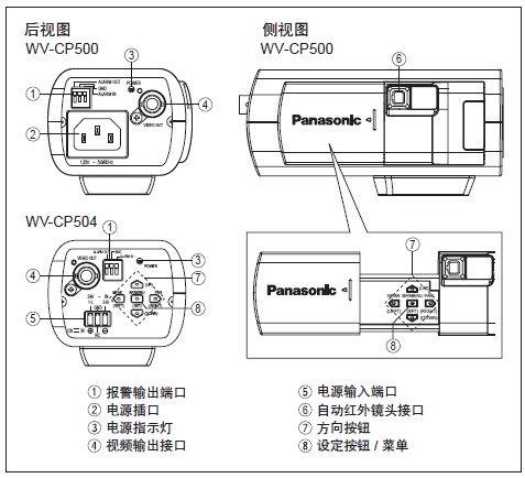 报警输入 / VMD许可输入 / 彩色黑白切换输入 / 场景文件切换输入、报警输出 / 彩色黑白切换输出各1端子 |