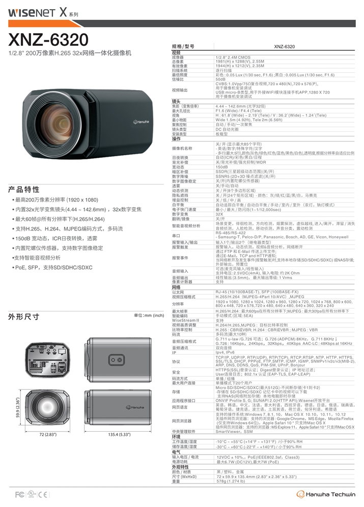1/2.8" 200万像素H.265 32x网络一体化摄像机