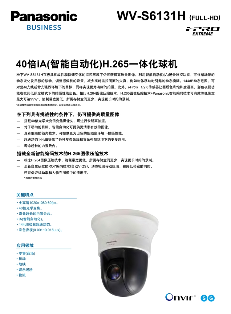松下WV-S6131H在极具挑战性和快速变化的监控环境下仍可获得高质量图像。