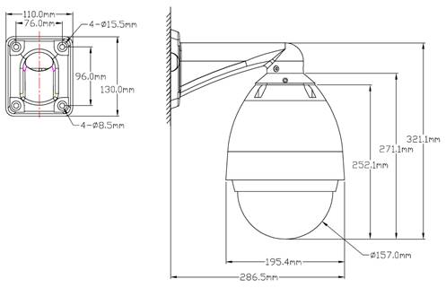 • 水平方向360°连续旋转, 垂直方向180°, 无监视盲区
